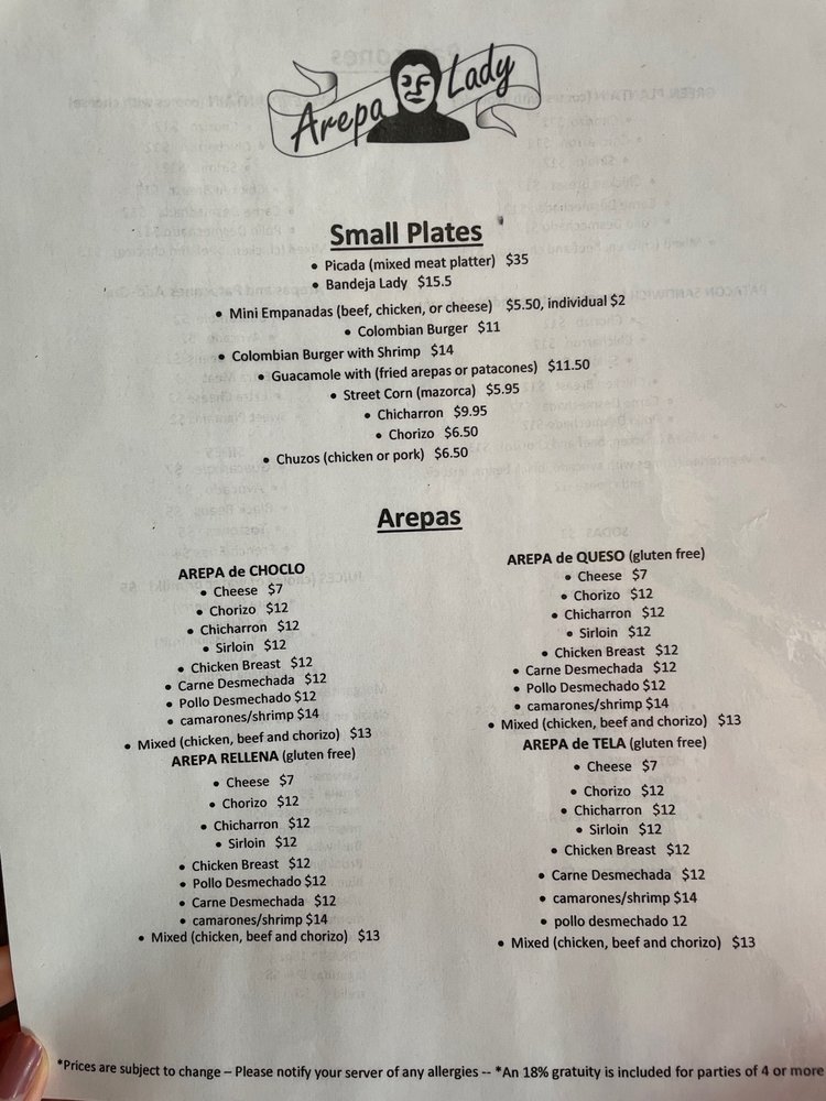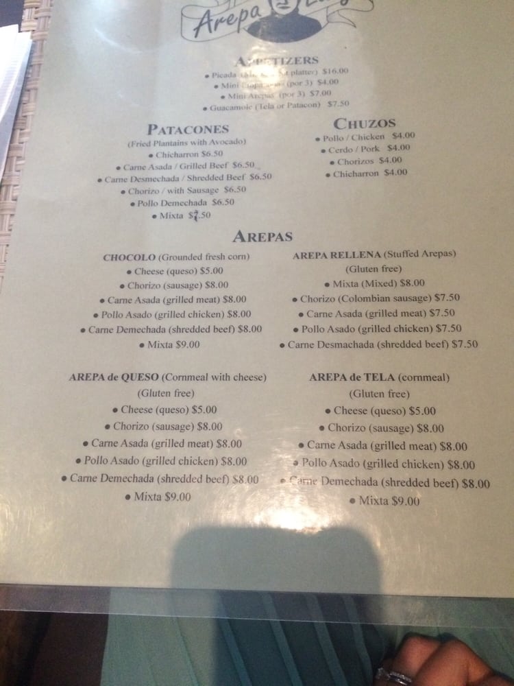 Introducing the menu at Arepa Lady - a Colombian gem located in Jackson Heights, NY. This charming spot offers a variety of options such as Arepa Con Queso, Mini Beef Empanadas, and Arepas de Choclo. Customers rave about the delicious food and vibrant atmosphere. The cheese-filled arepas are a must-try, with tender chicken and flavorful sauces on the side. Prices are affordable, and there are unique styles of arepas to explore. The margaritas are a hit, especially the passion fruit blend. Service is friendly and attentive, making it a great option for lunch or a casual dinner. The cozy ambiance and bustling vibe make for a memorable dining experience. Don't miss out on the diverse menu and strong drinks at Arepa Lady.